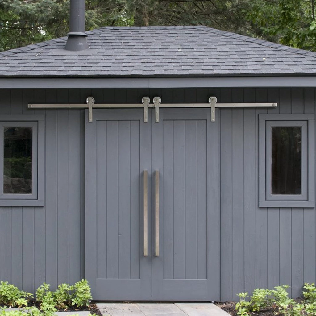 This beautiful bi-part barn door hardware is not only functional but also a real showstopper. In a bi-parting system, two doors are installed along the same track; the doors slide away from each other to open and slide towards each other in the middle to close. Made from quality materials such as brass and steel, this hardware is also available in various finishes.