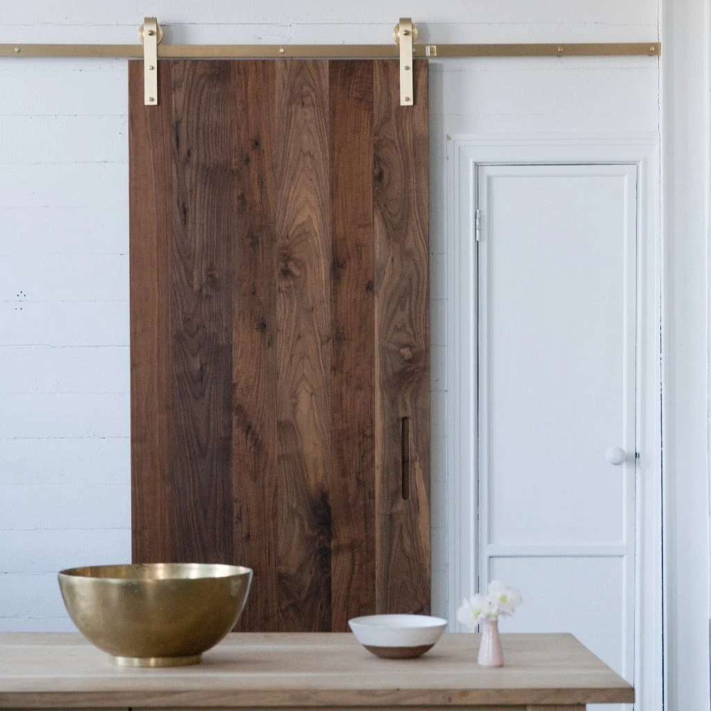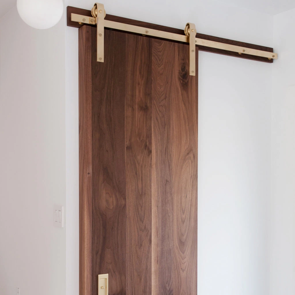 This beautiful brass barn door hardware is not only functional but also a real showstopper. The material is hand polished to a brushed finish.