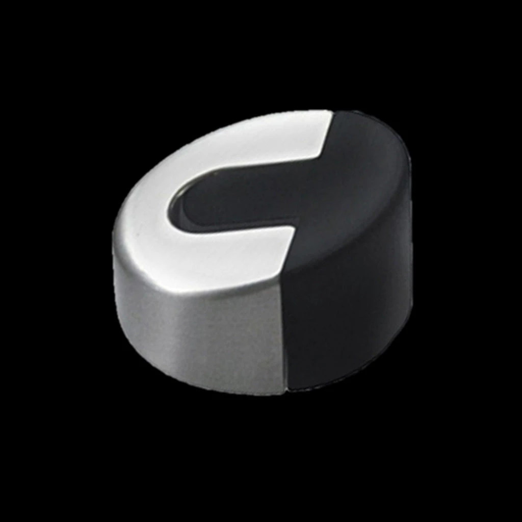 A satin or polished stainless steel floor mounted door stop with black rubber in an interlocked shape.