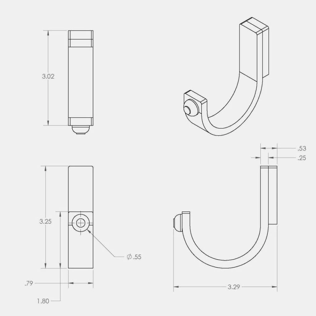 This hook is a practical and elegant solution providing a space for hanging as well as acting as a bumper for doors. Available in a variety of finishes and concealed mounting, this fixture is ideal for both commercial and residential applications. Find other components in the Charlie collection here.