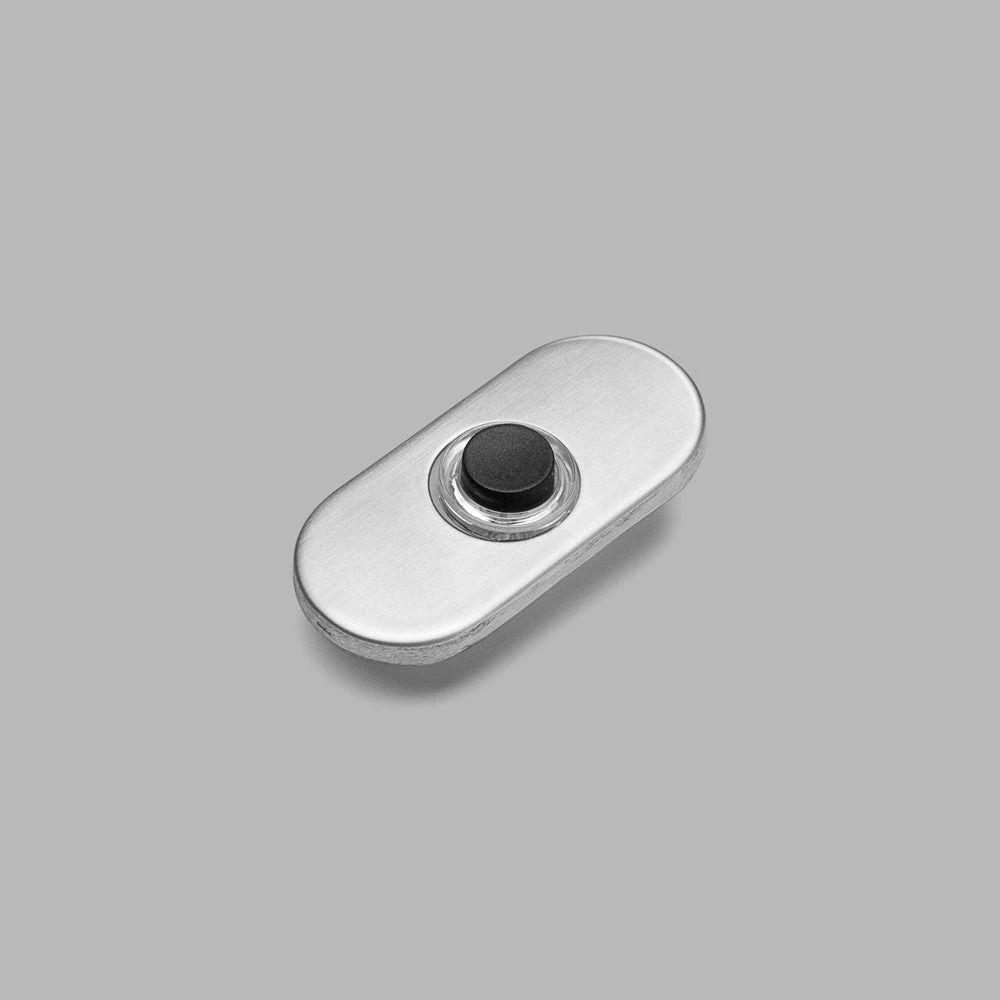 The Knud Oval Doorbell is a minimal doorbell push plate in the Knud Collection, a coordinated line of minimalist architectural hardware.