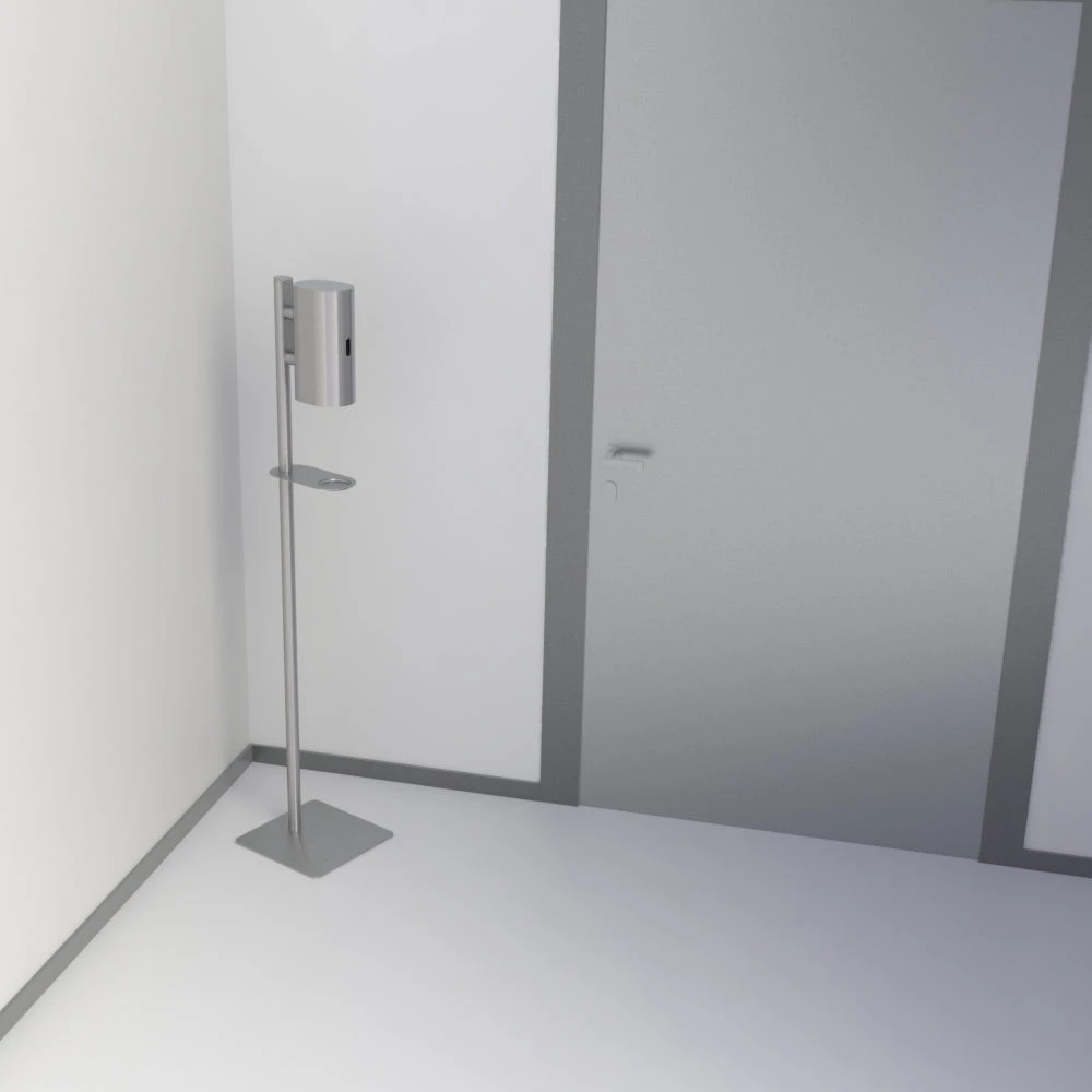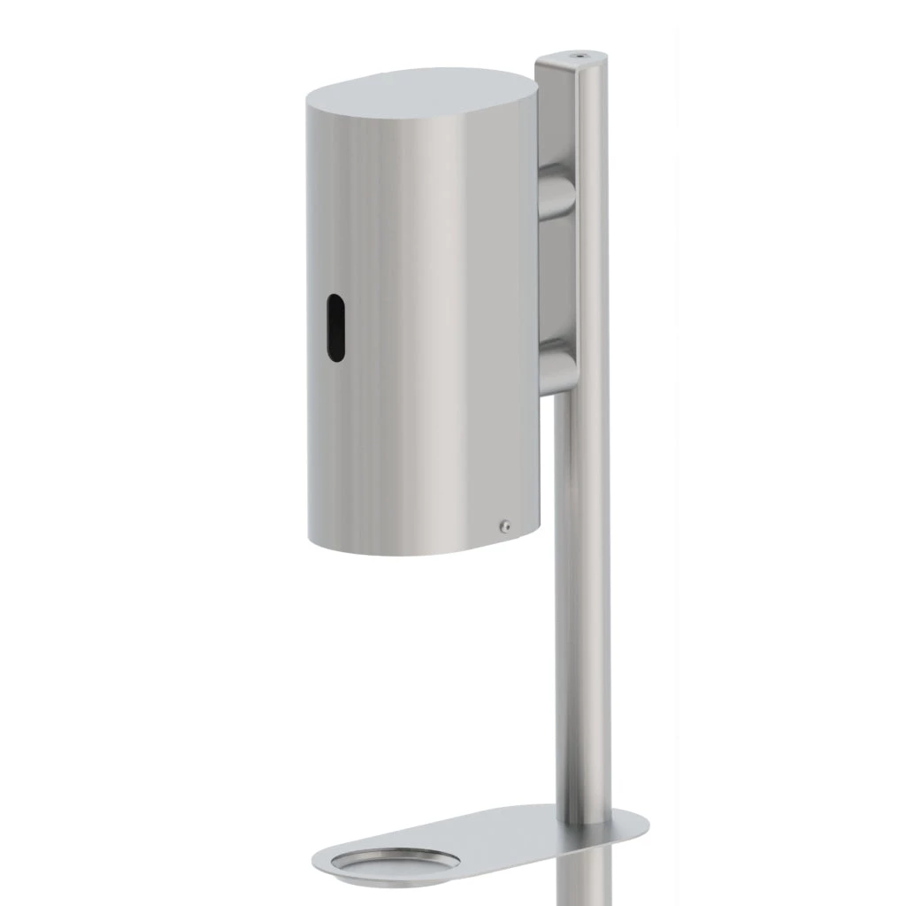 Designed by Knud Holscher, the sleek floor standing touchless dispenser features rounded edges and functional circular hole detailing, all while embracing the latest innovations in motion-sensor technology.