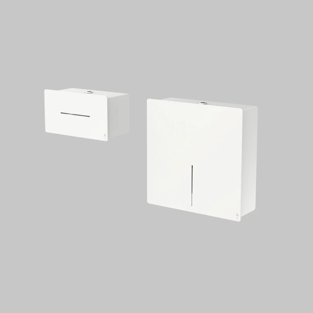 The LOKI range is an award winning collection of state of the art sanitary equipment. The beautiful details and clean lines of each piece were designed to make products that easily integrate into a variety of settings. The complete sanitary line consists of a hand dryer, a paper towel dispenser, toilet paper dispensers for standard and jumbo rolls, a 23l sanitary bin and dispensers for liquid soap, foam soap and disinfectant which come in a touch-free and a manually operated variant.