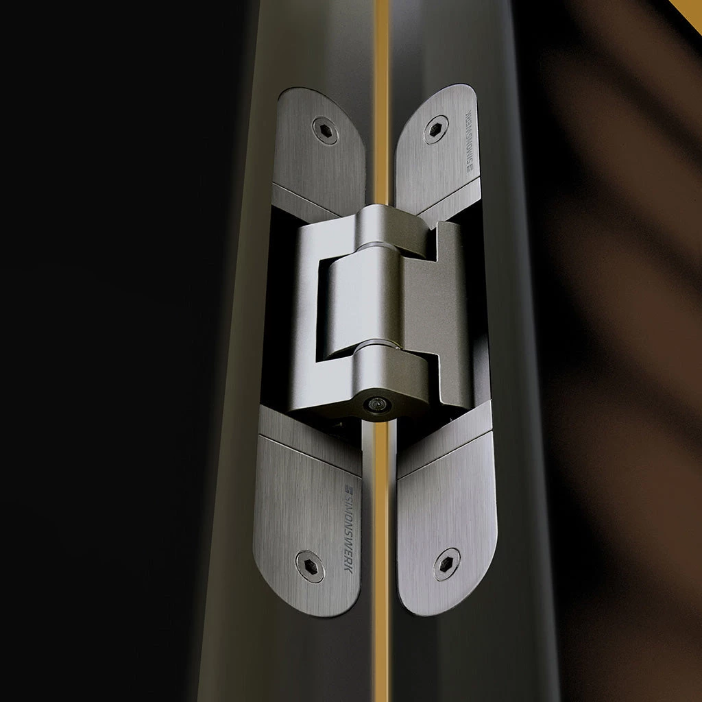 Made in Germany, TECTUS® is a comprehensive concealed hinge system for premium flush doors. Easily adjustable, Simonswerk’s TECTUS® hinges bring an unparalleled level of performance, precision and control. The hinges can be easily adjusted and aligned into the wood, steel or aluminum frame by using the provided hex key. Tectus hinges TE 240 3D hinges are for unrebated and rebated flush residential doors and have a sideways closed hinge body for a homogeneous mortise appearance. The maintenance-free bearings have a test rate of 1,000,000 cycles under full load and can be seamlessly integrated into a variety of settings.