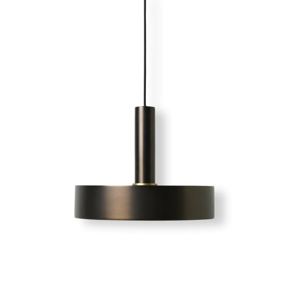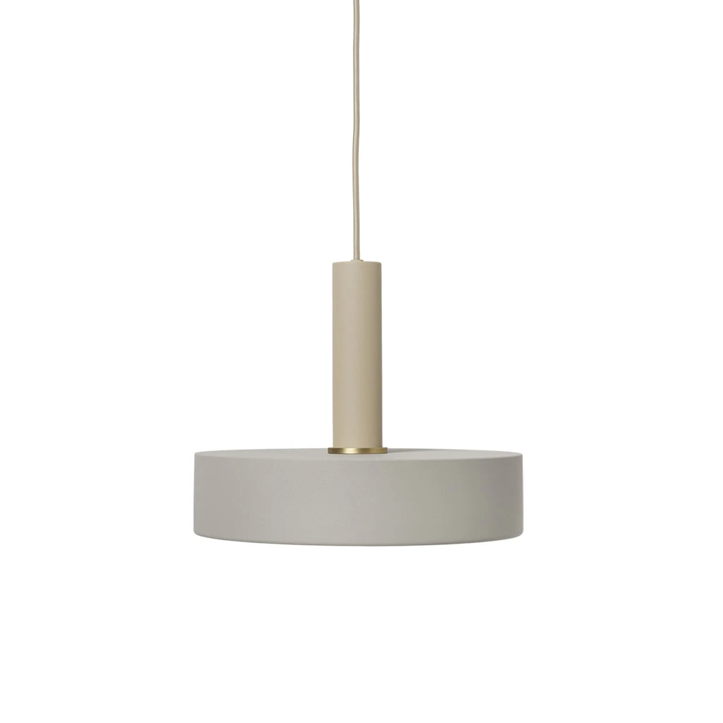 The Collect Disc Shade by Ferm Living is a nod to retro forms, this shallow drum-shaped pendant radiates strong light downwards thanks to its reflective white interior. Pair with the Socket Pendant core to illuminate your space.