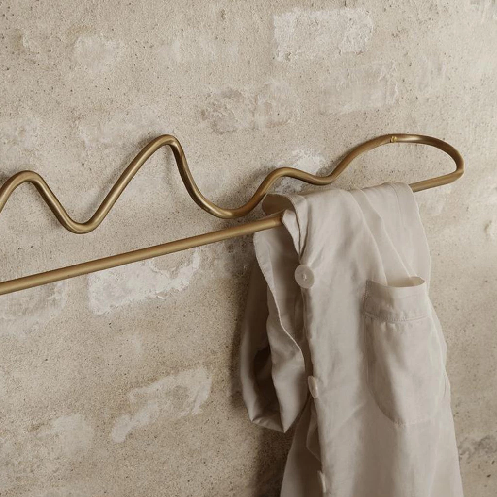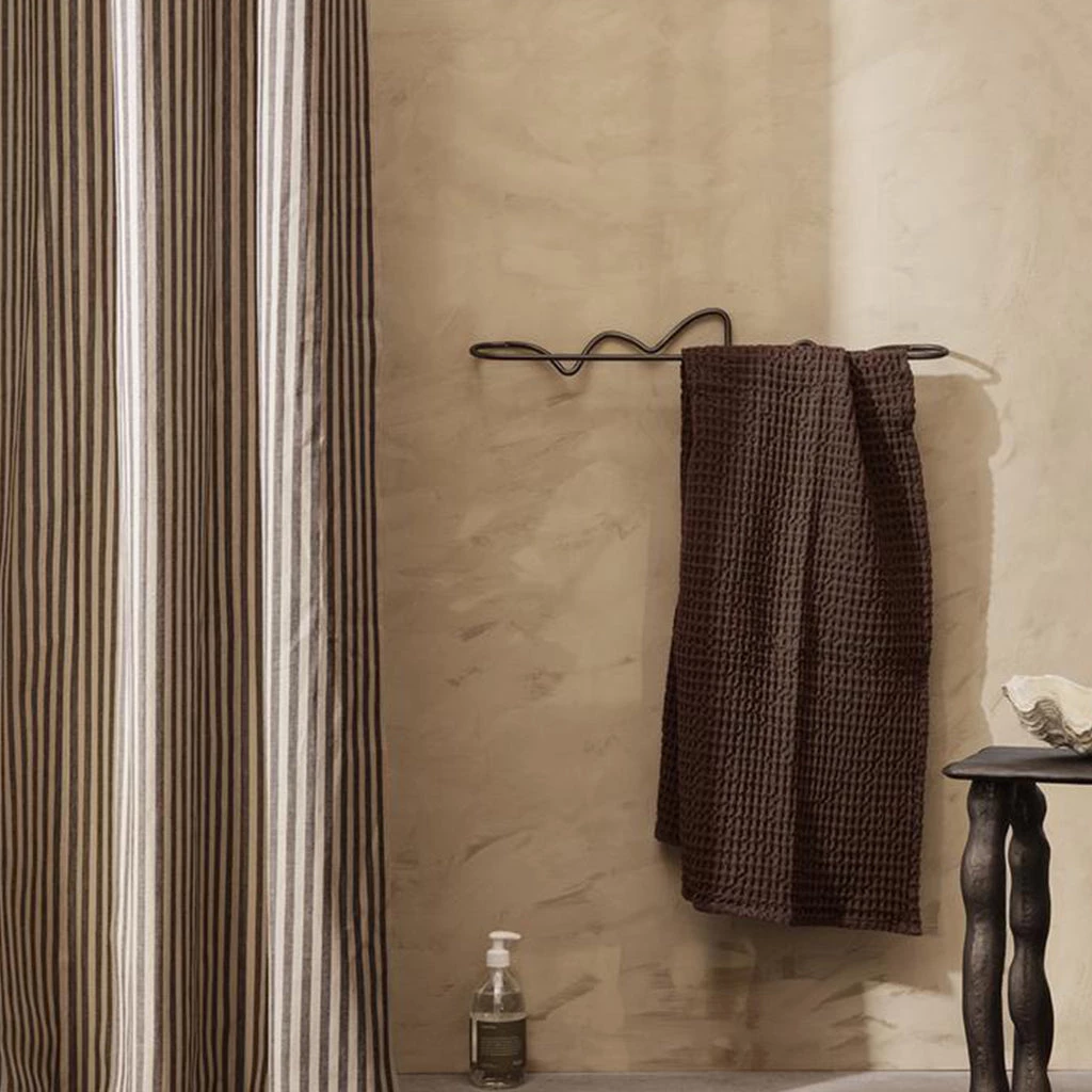 The Curvature Towel Bar is an organically shaped bar that has been hand-formed in solid brass with a matte finish. The whimsical curves juxtapose the solidity of the material, and make for a playful, functional addition to any room requiring hung storage.