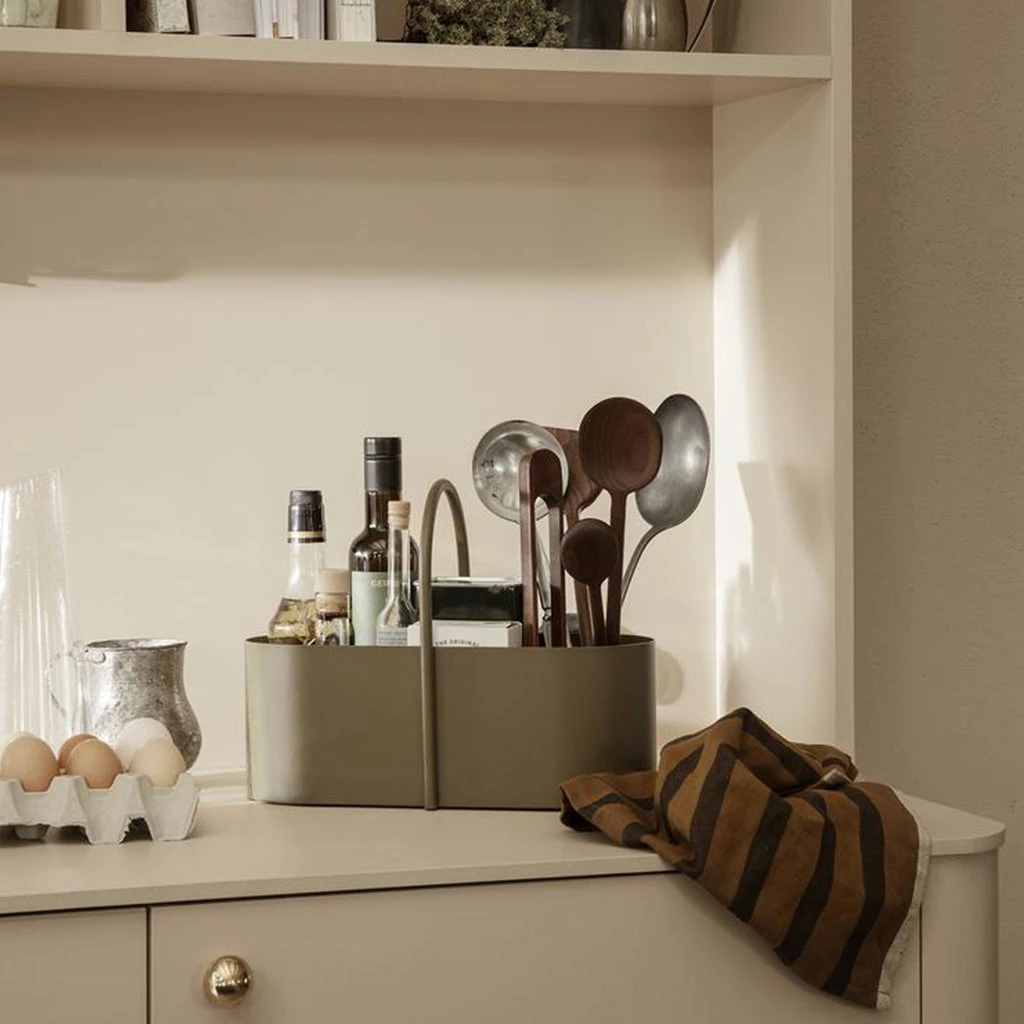 The Grib Toolbox is a handy solution for your various indoor and outdoor needs. Made from powder-coated metal, the gentle curves of its oval form are mirrored in the spherical handle, which rests comfortably in your palm when carried. It is multipurpose and can be used for storing gardening utensils, cleaning articles, office supplies, and bathroom essentials.