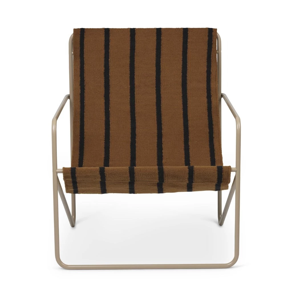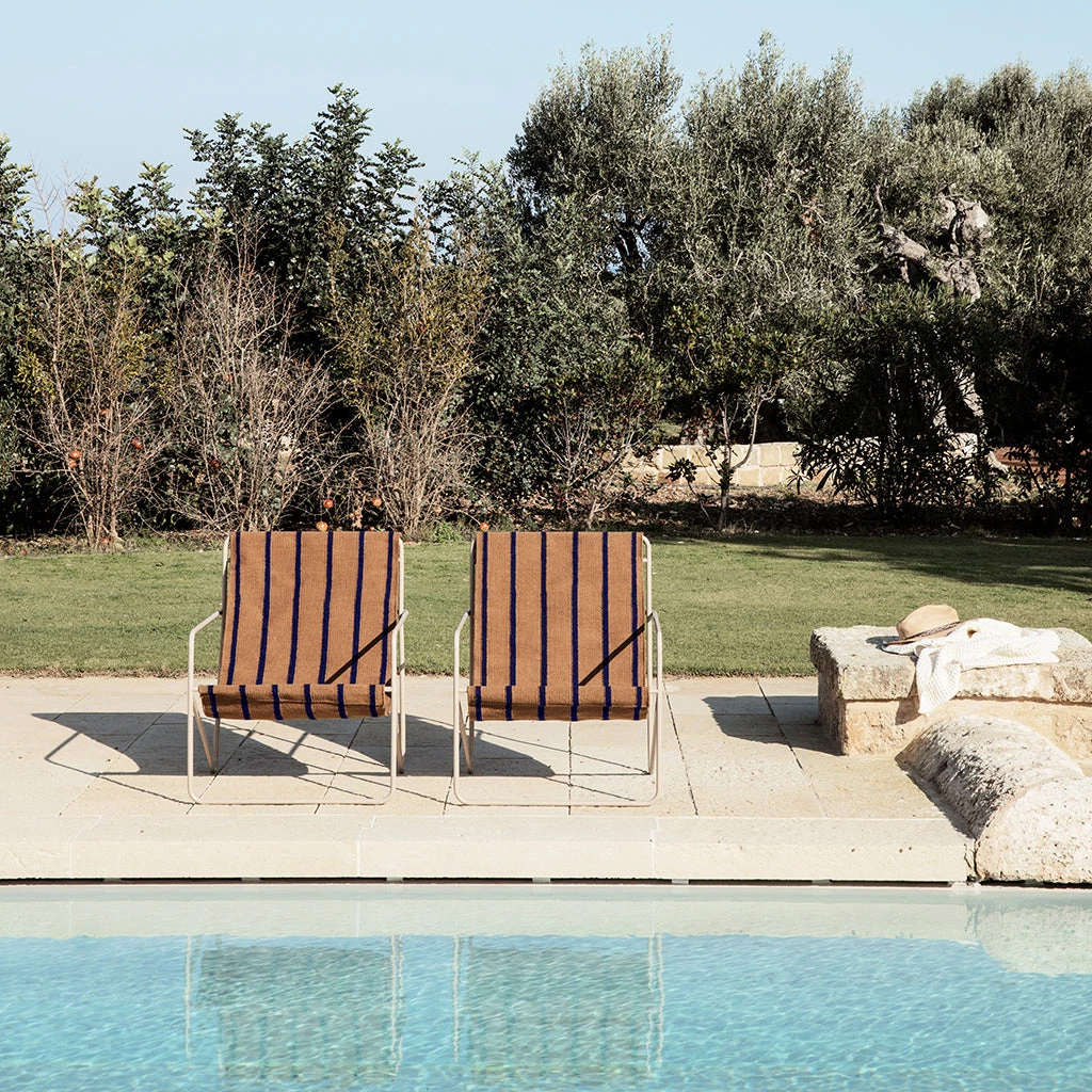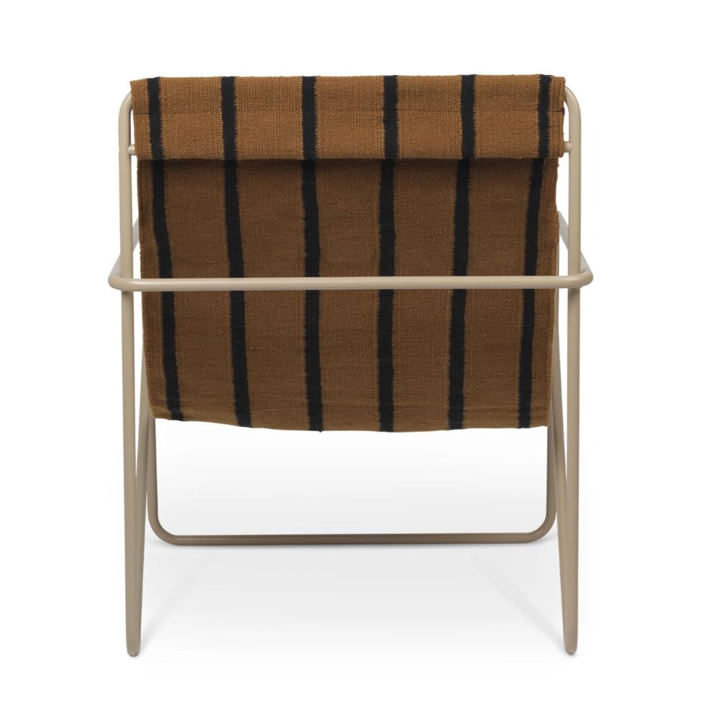 A Modernist chair with a graceful profile, Desert Chair is crafted from a tubular powder-coated steel frame in colours Black or Cashmere, holding an interchangeable woven textile seat made from recycled plastic bottles, available in four designs: Soil, Stripes, Shapes or Solid Cashmere. Suitable for use both indoors and out, the lounge design invites relaxation. Just sit back and enjoy. Made in Denmark.