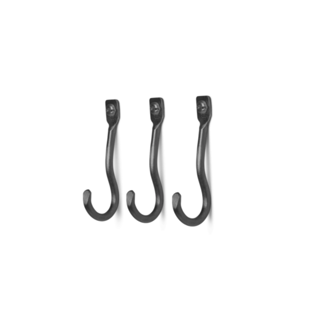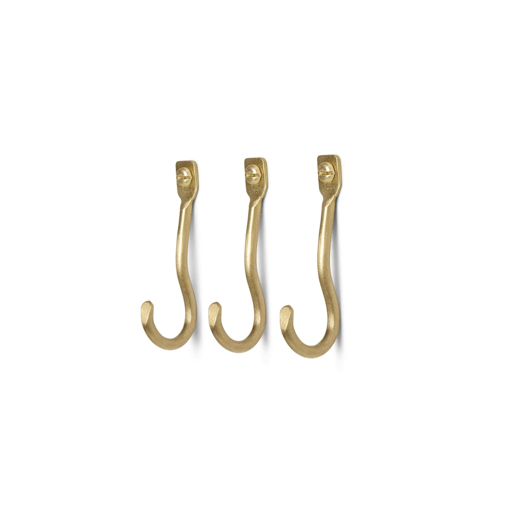 The Curvature Hooks are an organically shaped hook and hanger that has been hand-formed in solid brass with a matte finish. The whimsical curves juxtapose the solidity of the material, and make for a playful, functional addition to any bedroom, bathroom, hallway or kitchen. Sold as a set of 3.