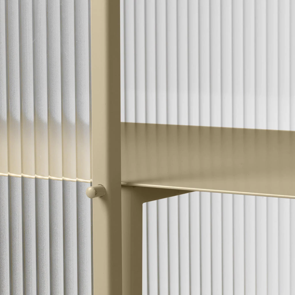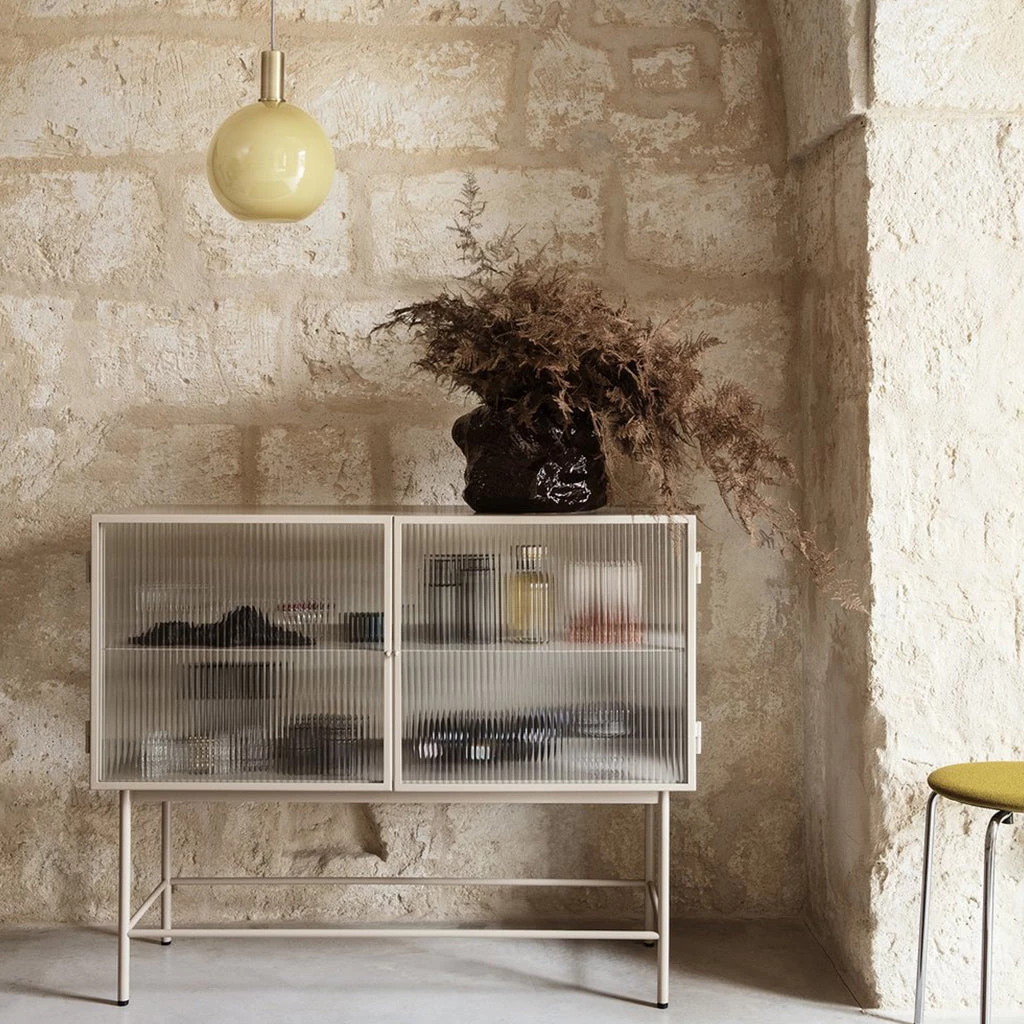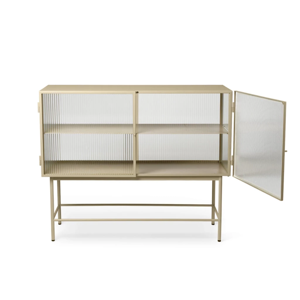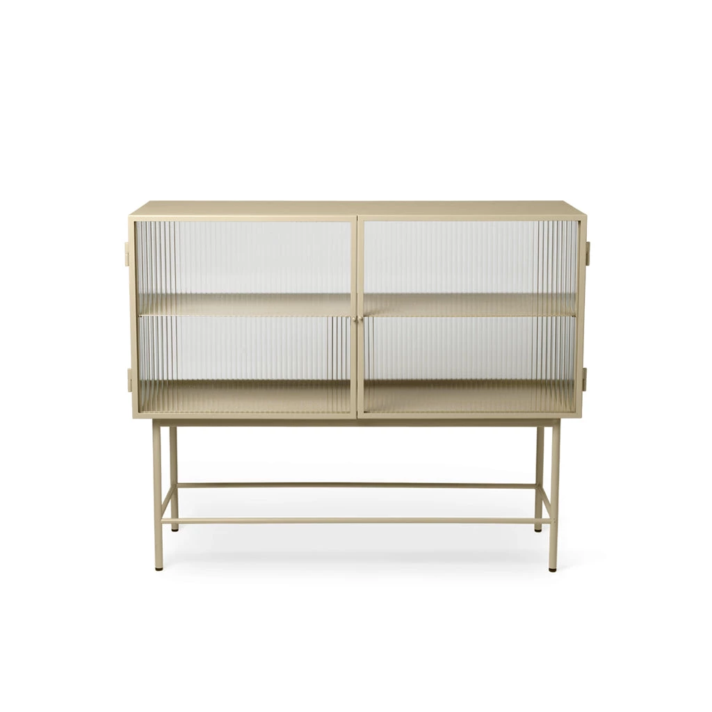Perfect for concealing clutter in a busy hallway or as an elegant storage solution for a home office, bathroom or dining room, the sleek cashmere coloured metal frame of Haze Sideboard blends seamlessly into any interior style. Reeded glass walls and doors continue the sophisticated expression, blurring the cupboard’s contents from prying eyes.