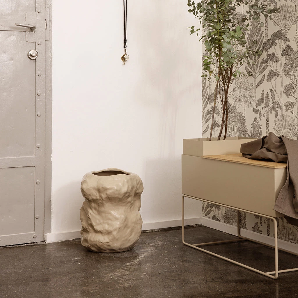 Originally shaped by hand, our Tuck Vase strikes the perfect balance between purposeful and powerful. The artistic piece is layered with a high-shine glaze in a creamy cashmere colour for a light-reflecting finish that highlights its furrowed surface. Fill it with flowers or branches or let it make a solo statement on a surface in your home.