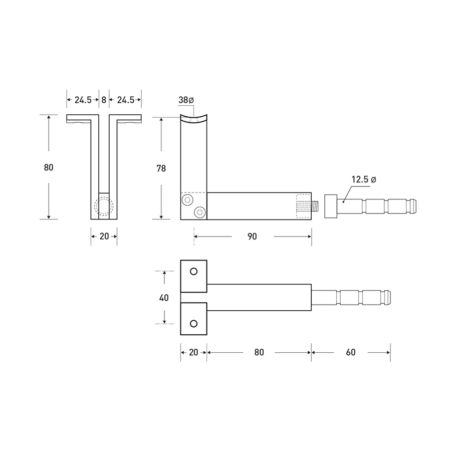 HB 555 Cast and machined from solid stainless steel, it is suitable for exterior or marine environments for 1-1⁄4″ to 2″ diameter wood handrails.