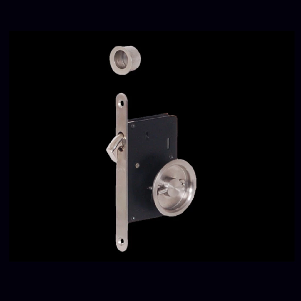 The satin stainless steel sliding door hardware comes complete with a lock and edge pull, perfect sliding doors that need a privacy function. Complete with 2 concealed screws for mounting.