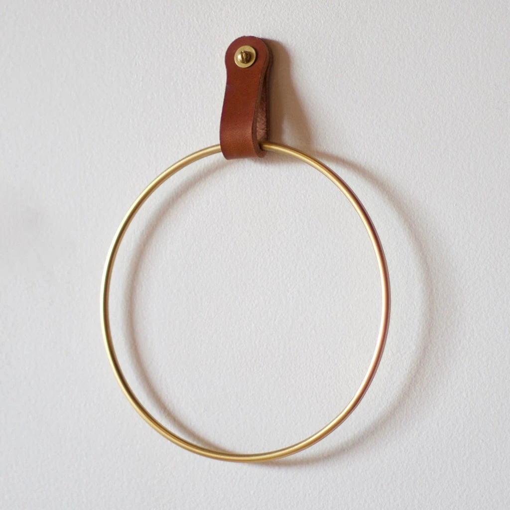 Offering a simple take on the classic towel ring, this product adds warmth and character with the combination of brass and leather.