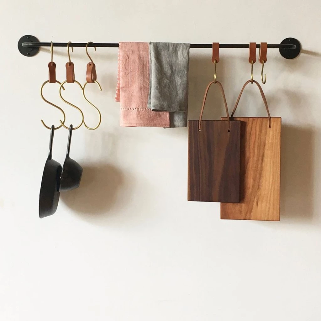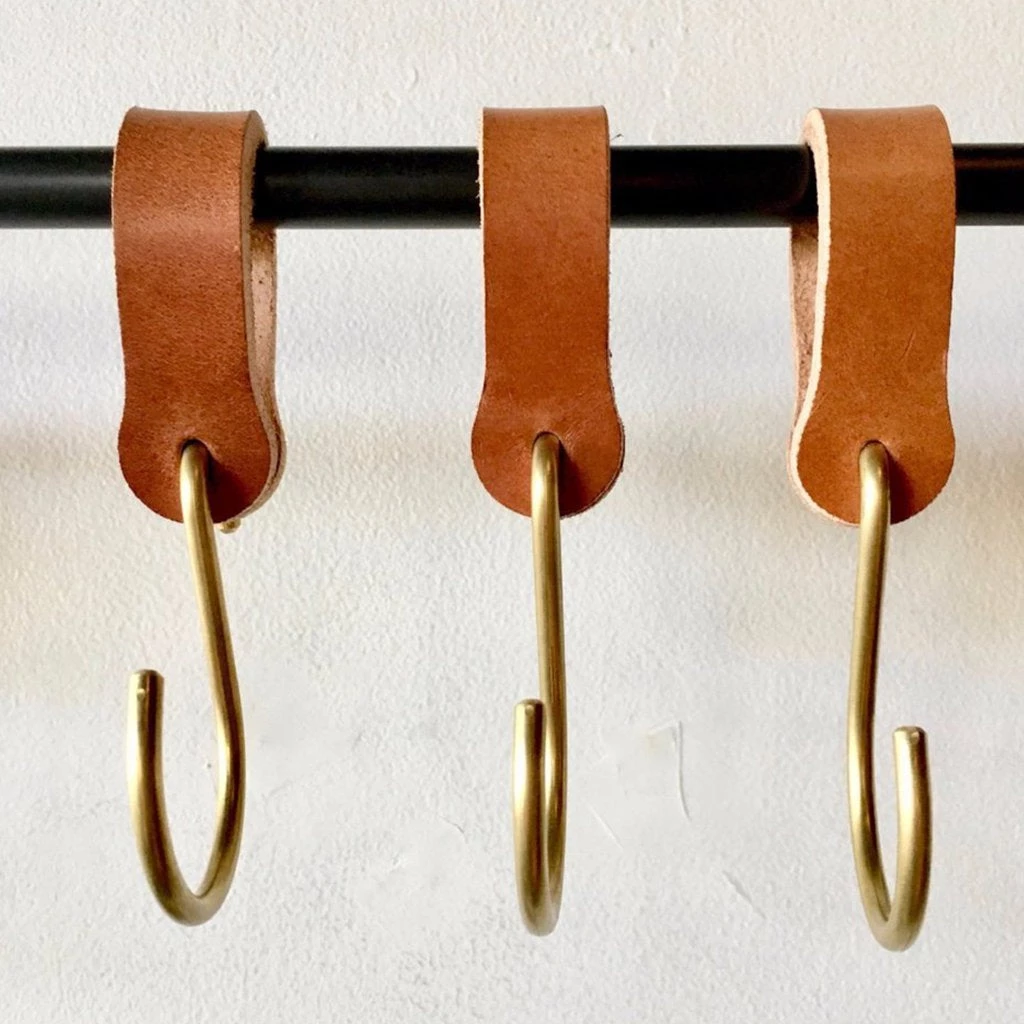 Ludlow Leather Hooks can be used with the Ellington Pot Rack or any place where an extra hook would come in handy. This hook is small but mighty and can handle plenty of weight! A simple idea with multiple uses.