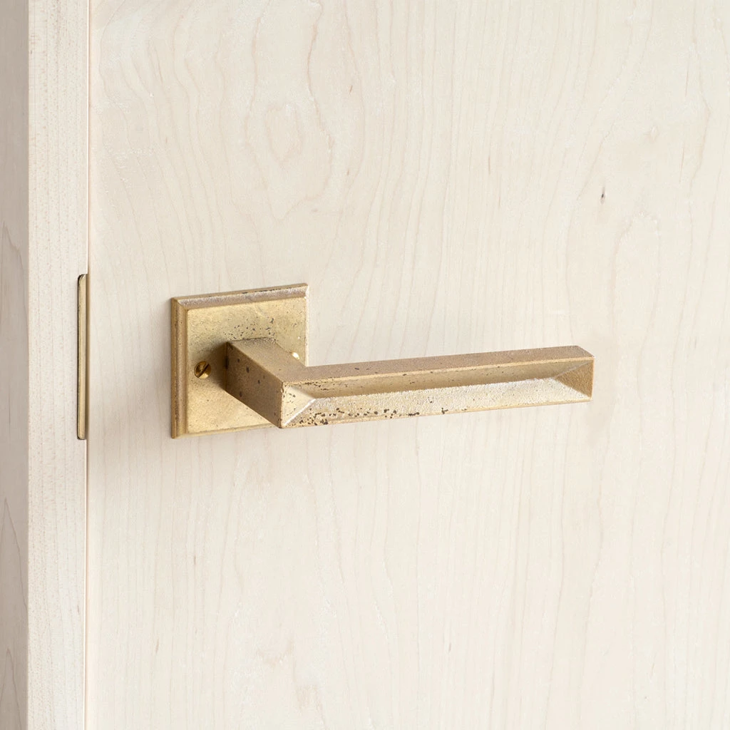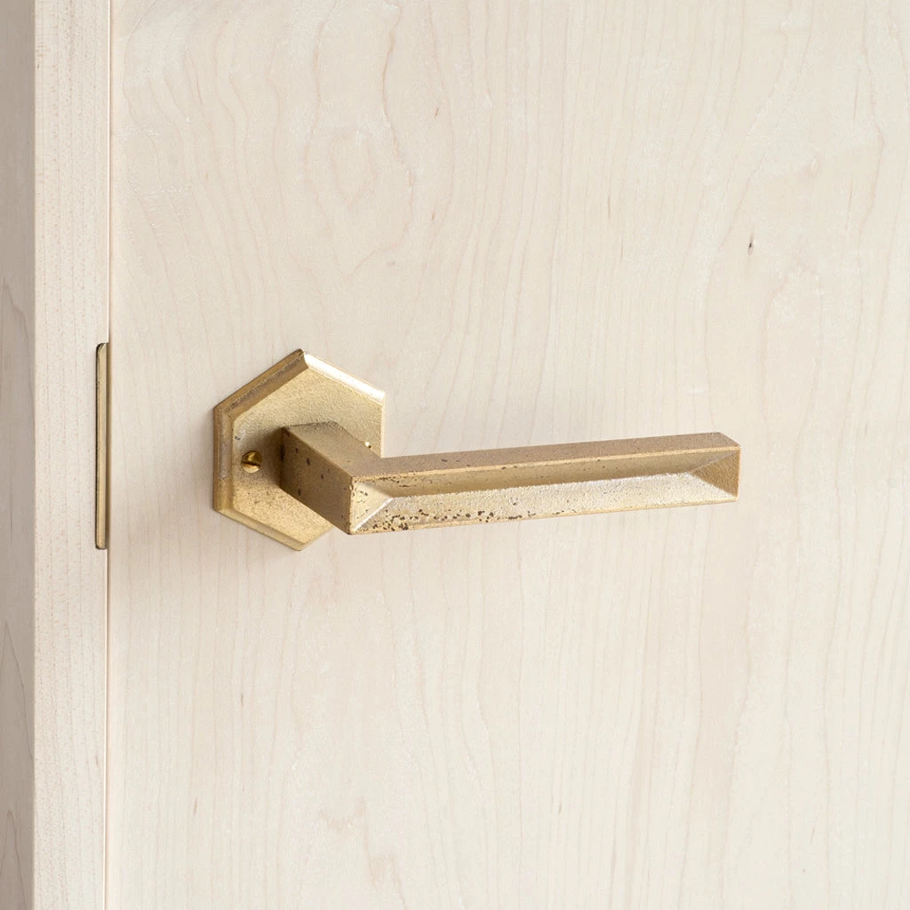The Hollow is a beautifully geometric and transitional lever. An heirloom quality piece of art for your door. Discover this distinctive line of sandcast brass door levers by MATUREWARE. An architectural hardware product line produced by FUTAGAMI in Toyoma, Japan.