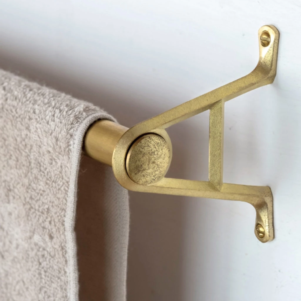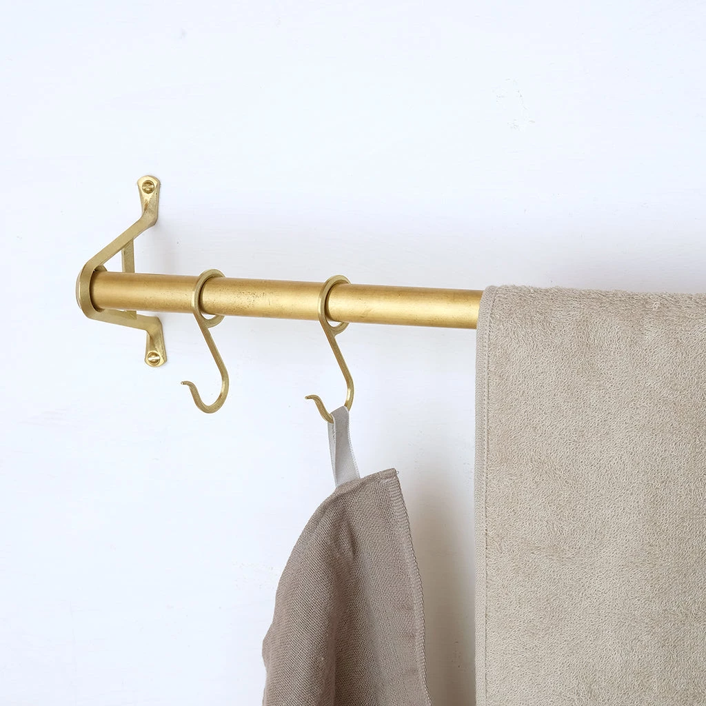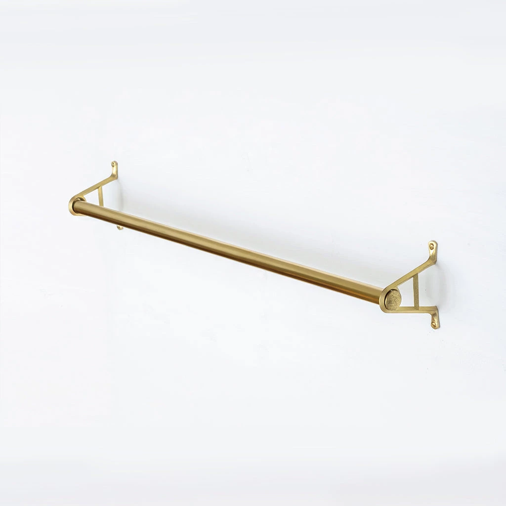 Beautiful brass towel bars and brackets. Available in two bar lengths and two bracket sizes.