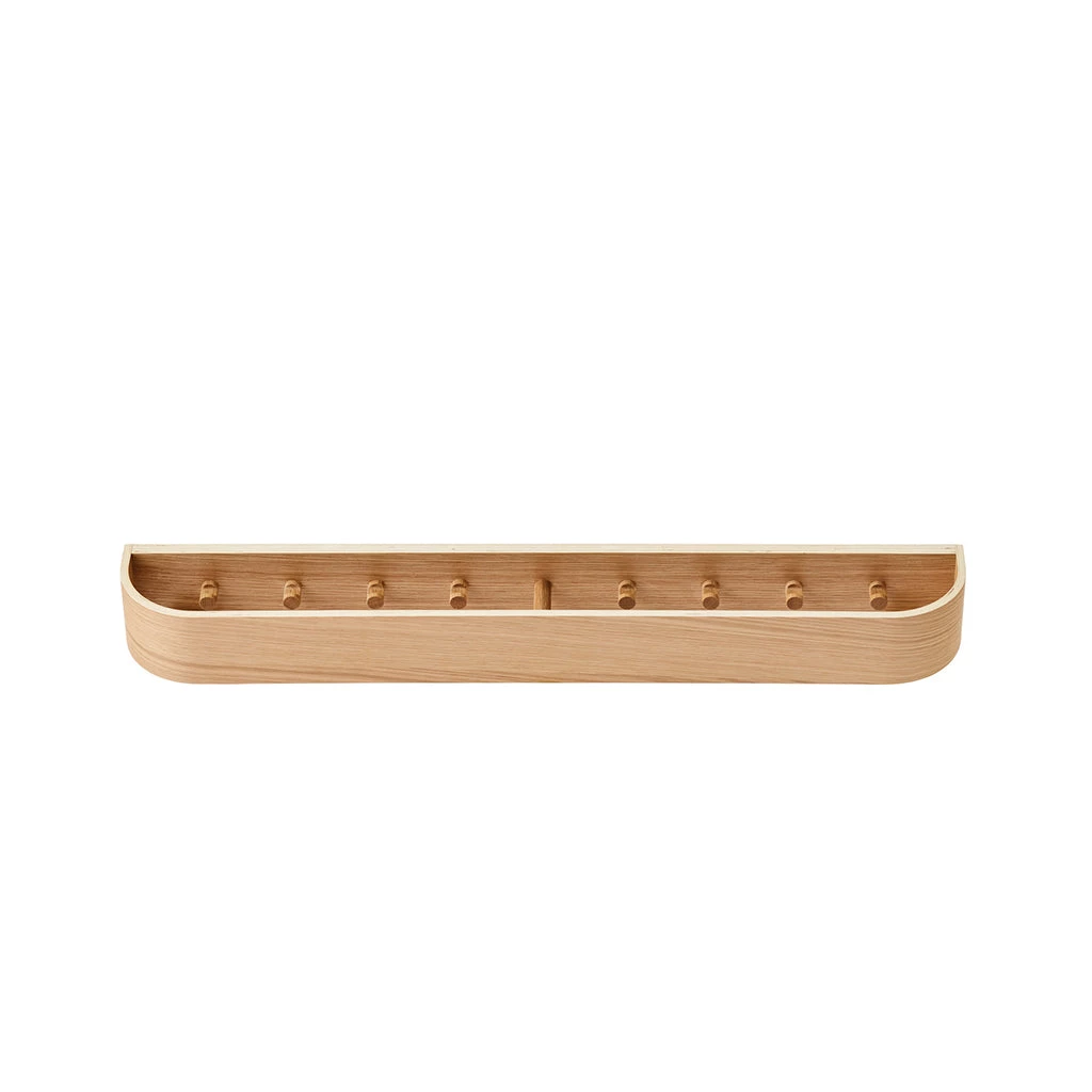 With its careful combination of gently rounded edges, warm wood and discreet functionality, the Epoch Rack offers streamlined storage for spaces large and small. Crafted in natural or dark stained oak, the wall-mounted rack features hidden hooks, and the space-saving design can be suspended alone or in rows of multiples.