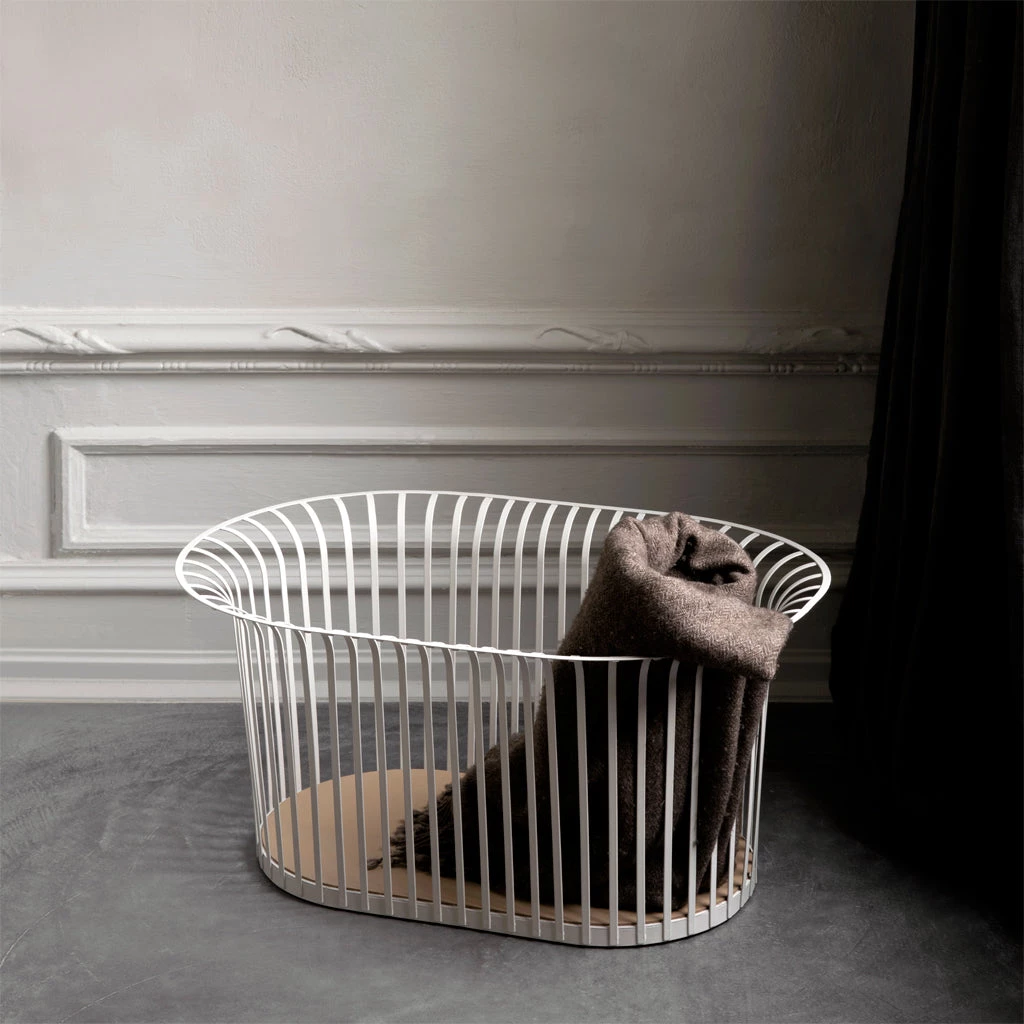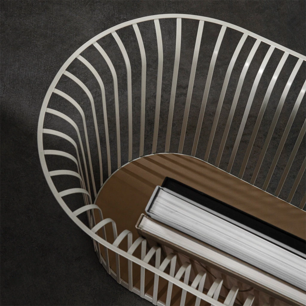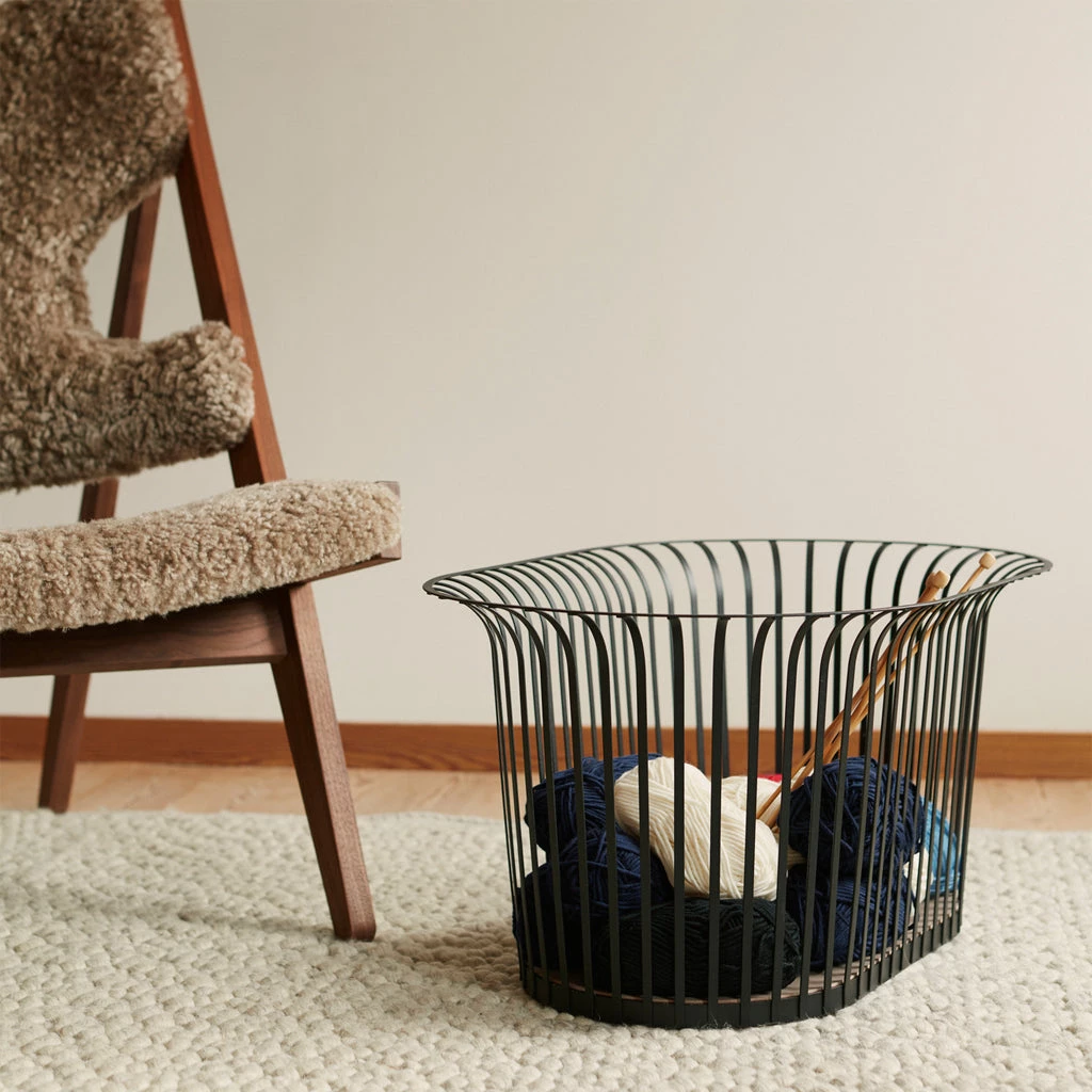The Ribbon Basket mixes modern and traditional through its simple and timeless design, a virtue of the designers of this basket, Norm Architects. The curvature and finish of the steel ribbons add a smooth and polished touch. Leather interior base and silicone feet reinforce the quality of the piece while adding a level of protection. This basket easily elevates any space while offering a practical storage solution for magazines, blankets, and home accessories.