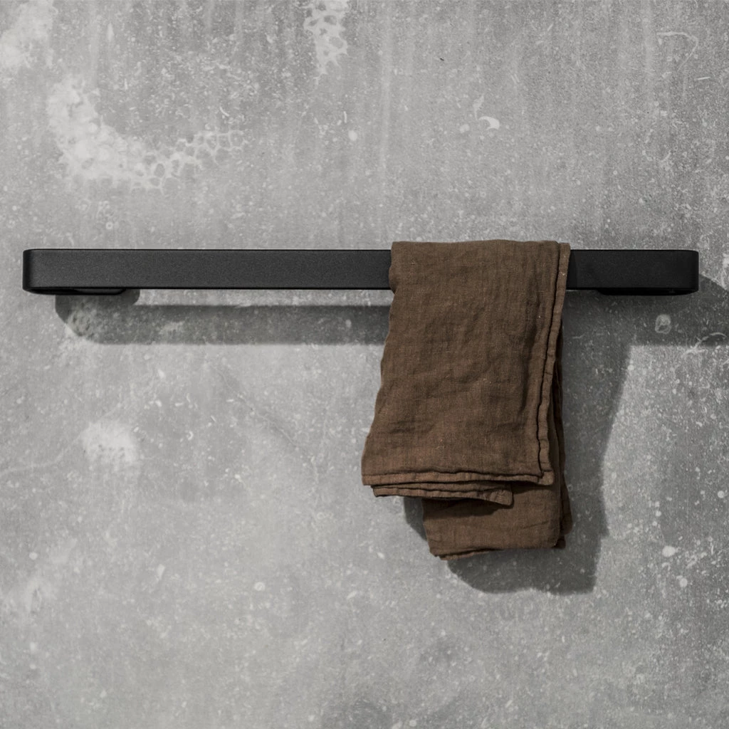 The Norm Towel Bar is designed in a simple and recognizable style; rounded and soft in expression, while still being visually strong, and iconic.