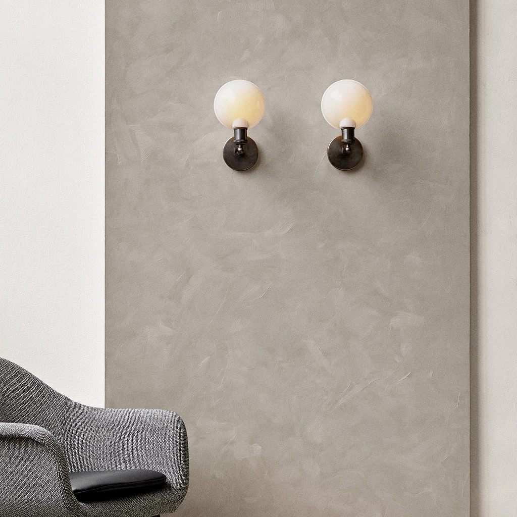 Part of our Tribeca lighting collection, inspired by the industrial glamour of rapidly changing 1930s Manhattan and the result of multiple experiments with old Art Deco lamps and reusable parts, Walker Lamp is a true modern classic. The Walker Wall Lamp features either a luminous opal glass bulb shade, or a blackened brass shade that rests on the same characteristic brass mount, designed in an upward facing position to cast the light 360 degrees. Drawing on its minimalist Scandinavian roots and impressions of American industrialism, each retro chic lamp combines elegant details with a decidedly engineered aesthetic. The Tribeca Collection is offered in a range of shapes, materials and finishes to suit every interior. From warm, tactile brass on dramatic chandelier designs to sleek and modern powder coated steel on functional desk lamps, each design marries the form, function and space-enhancing warmth that is at the heart of MENU.