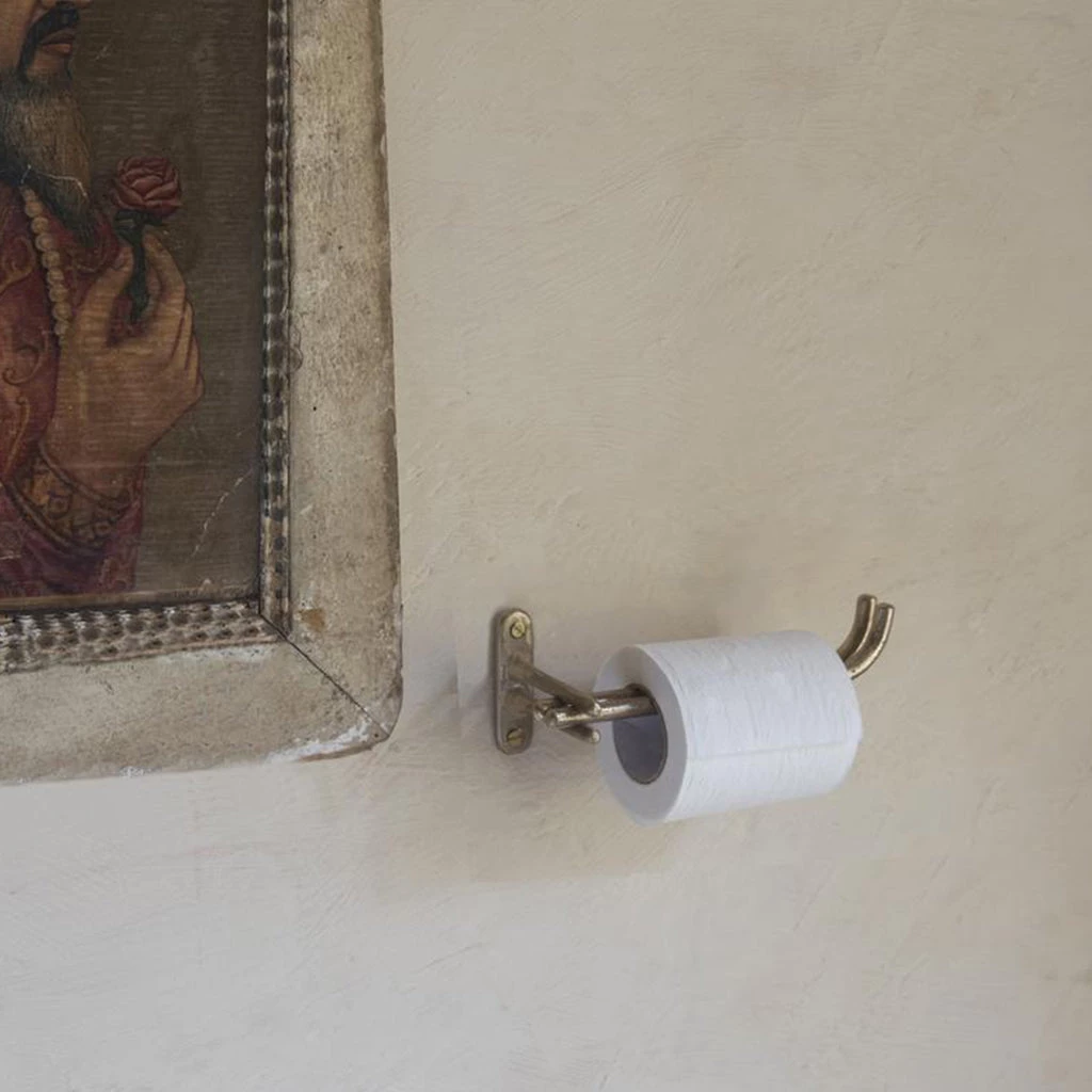 Warm and rustic, this solid brass toilet roll holder thoughtfully combines French aesthetics with traditional Indian design techniques.