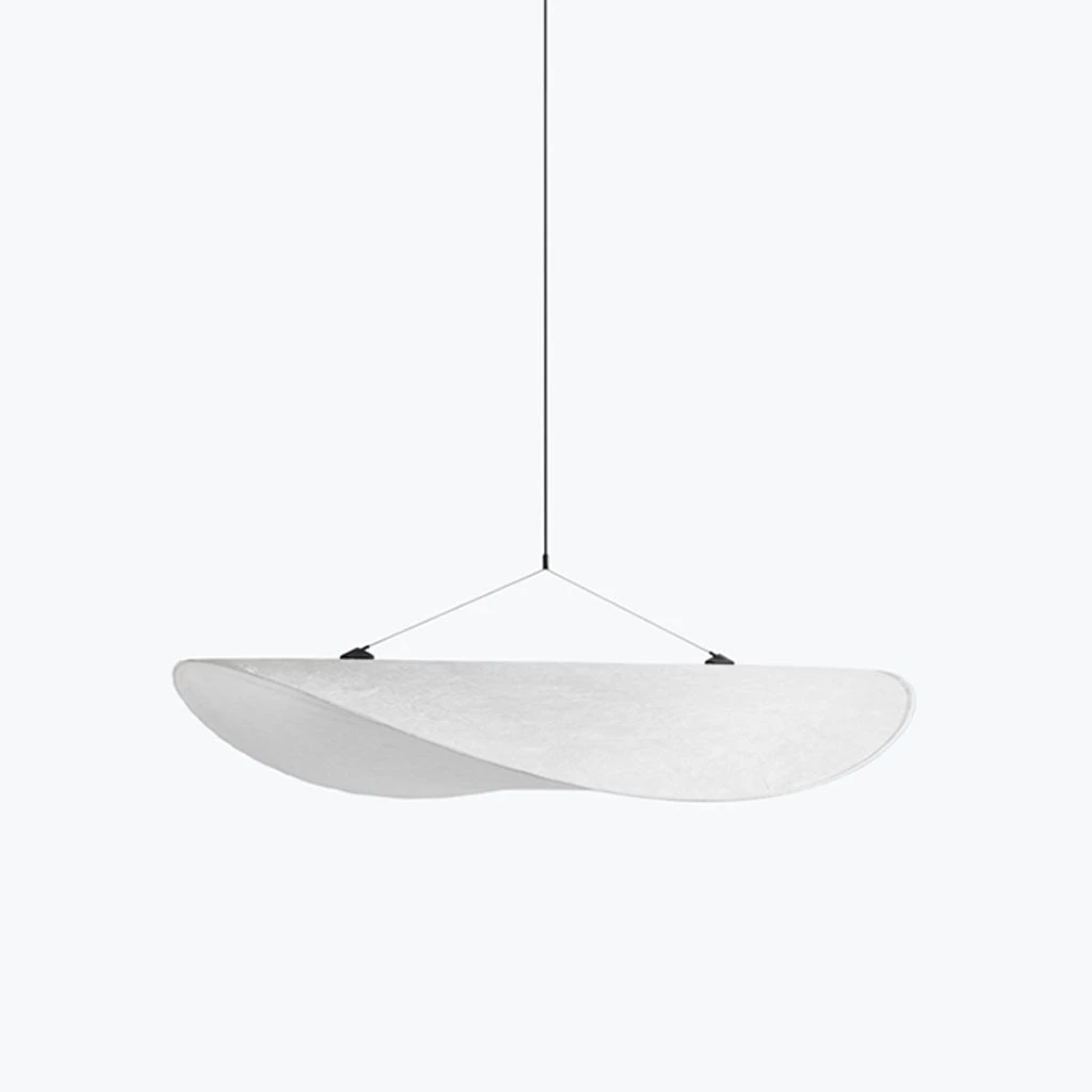Stretching to over one meter in length, the Tense pendant lamp appears like a soft cloud has floated in. A truly modern construction, its soft Tyvek diffuser represents a material both durable and soft – whilst being 100% recyclable. The flexibility of this paper-like diffuser allows its slim frame to accentuate the cloud like qualities of the Tense pendant lamp. Finished with a slimline LED light source, all components fit into a slim box for ease of transport. A truly modern approach to lighting.