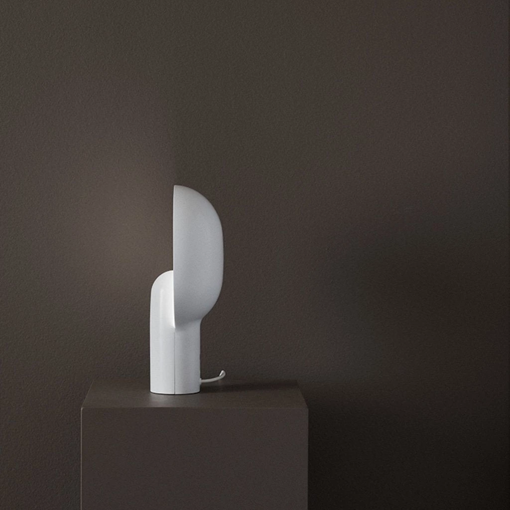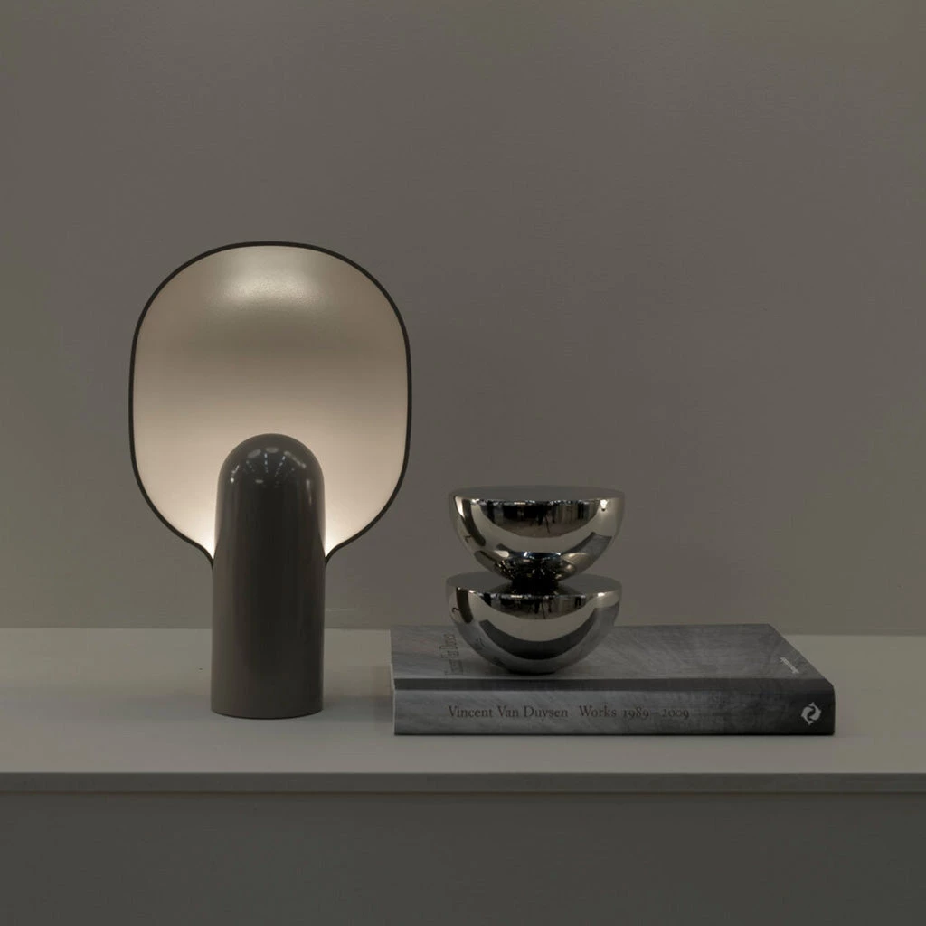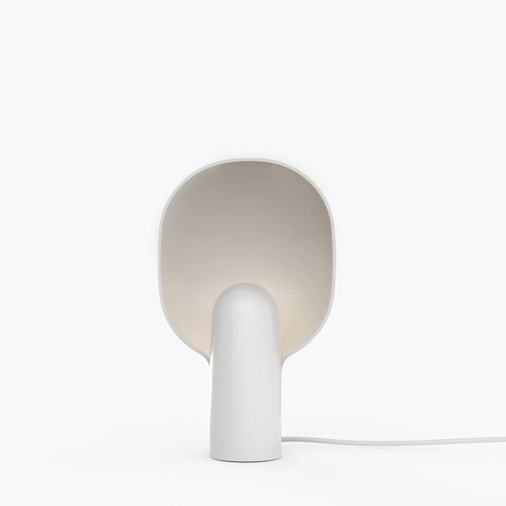 The Ware Table Lamp brings together two distinct flowing forms into a single object. Appearing like a pair of shells huddling together on a cold shore, the rounded front hides the lighting diffuser – allowing a soft illumination to swell up from within. Once illuminated, a sense of depth is created between the pieces textured layers. A unity between light and dark.