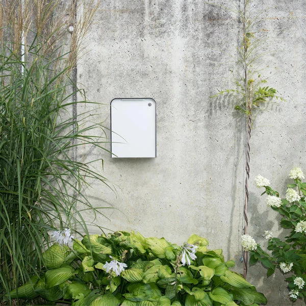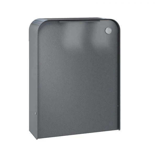 This elegant modern mailbox has a slightly rounded CAP frame that comes in a dark grey powder coated finish. The frame projects slightly from the body working hard to protect the mailbox from the elements.