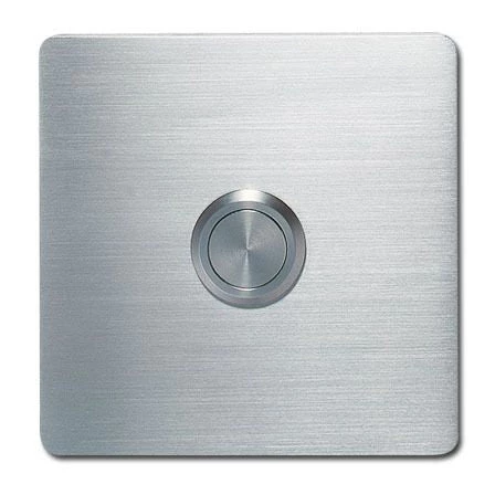 This square and modern doorbell push plate in brushed stainless makes a beautiful and graphic statement to your exterior. The wired plate is compatible with most bells.