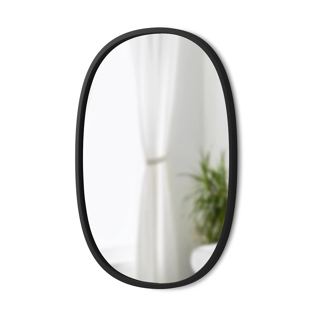 Hub Oval Mirror is the perfect wall decor for busy areas like entryways and washrooms. Its protective rubber rim makes it more durable than most other mirrors while providing a modern, industrialized look that is suitable for both classic and contemporary decor.