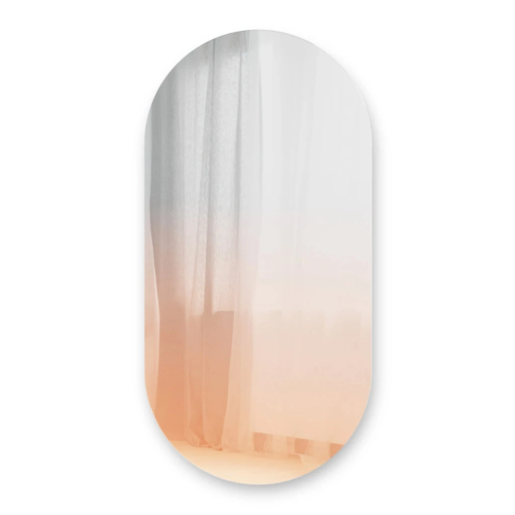 Misto Mirror by Umbra features a soft gradient, adding a touch of color to your space. The slim oval shape incorporates a decorative touch to your walls. With rounded curves, Misto instantly softens any space and doubles as an art piece on your wall.